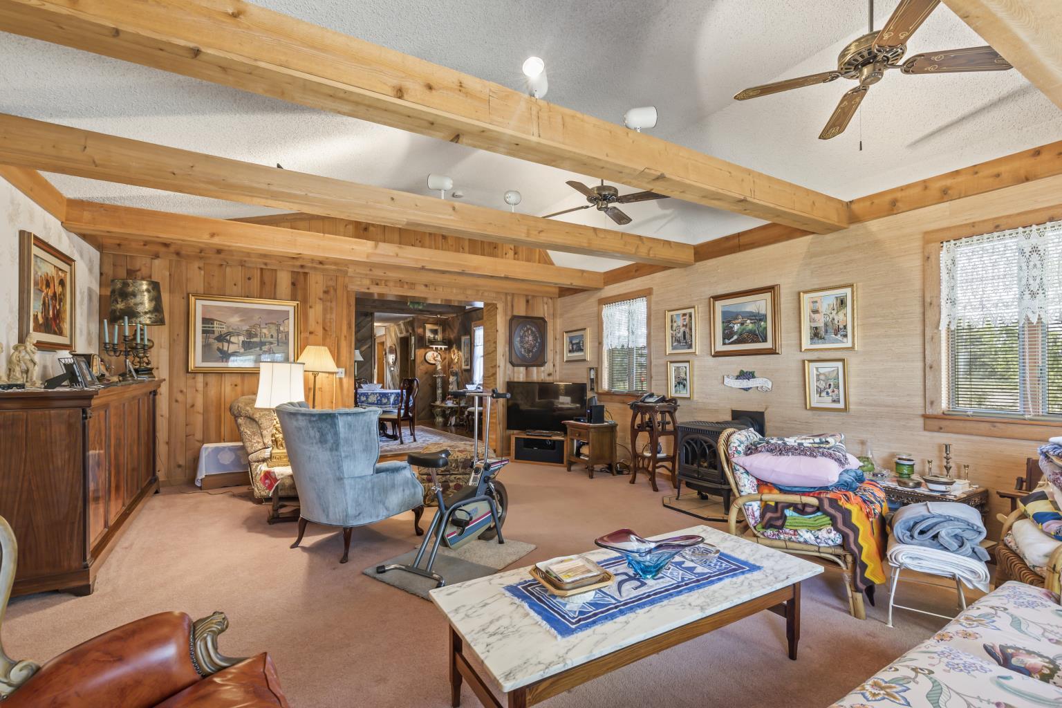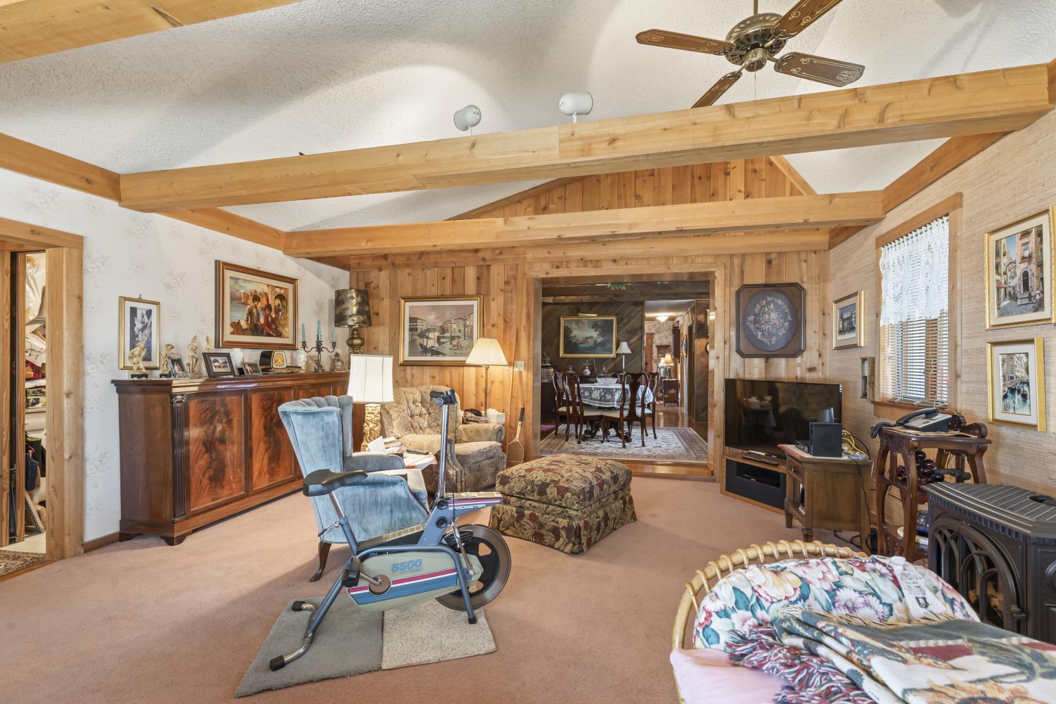 Formal Living Areas plus a huge vaulted Addition with wood-planked walls &