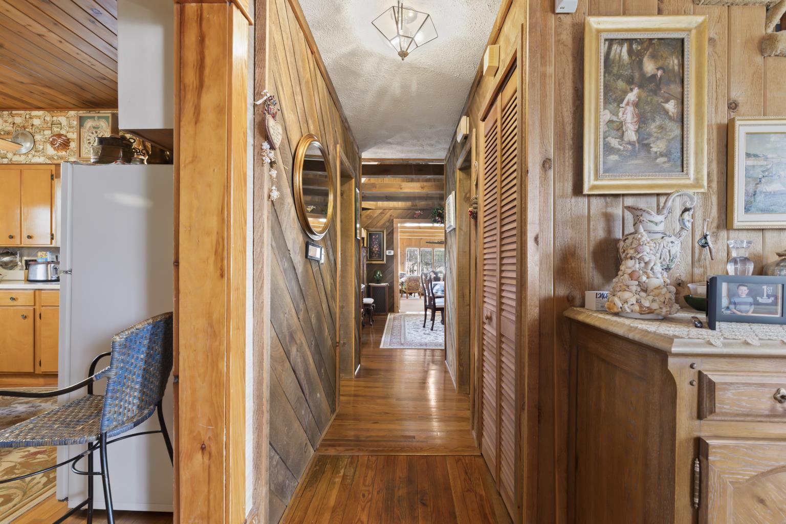 SF! Wood floors, casing, baseboard, trim doors, & wood-planked ceilings!